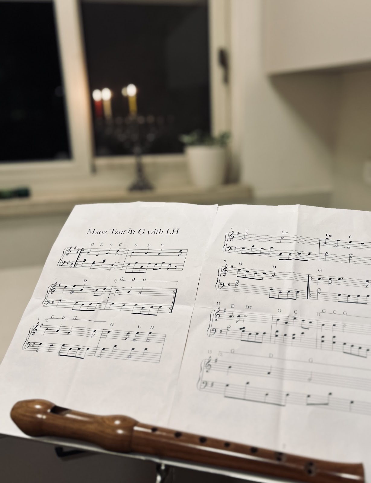 Mein neues Hobby Flötespielen hilft etwas, mich von sinnlosem Scrollen, schlechten Nachrichten und negativem Gedankenkarussell fernzuhalten. Vor einigen Monaten brachte ich auf einer Blockflöte kaum einen anständigen Ton zustande und Musiknoten waren für mich so fremd wie chinesische Schriftzeichen. Mein Vater hat mir ein vergilbtes Büchlein aus den Fünfziger Jahren anvertraut, aus welchem ich nun fast täglich einfache Lieder aufgrund der Grifftabellen übe. Gestern konnte ich vor kleinem Publikum recht passabel "Happy Birthday" spielen. Beim Chanukka-Lied Maos Zur pfeifen die hohen Töne noch etwas. "Stille Nacht" beherrsche ich besser, doch dafür fände ich an Tamars Geburtstag, am ersten Tag von Chanukka, wohl nur ein sehr verdutztes Publikum, trotz der dieses Jahr überlappenden Daten.